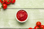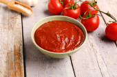 Zdjęcie "Miska ze smaczną pastą pomidorową na niebieskim drewnianym tle, zbliżenie" może być wykorzystywane do celów osobistych i komercyjnych zgodnie z warunkami zakupionej licencji Royalty-free. Obraz jest dostępny do pobrania w jakości wysokiej rozdzielczości do 5760x3840.