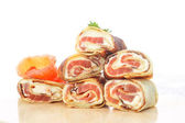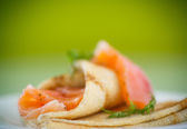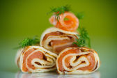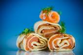 Roladki z naleśników z czerwona Ryba solona