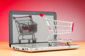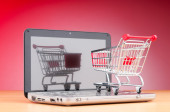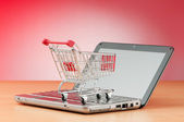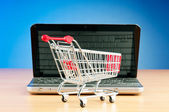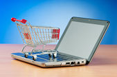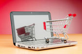 Internet online zakupy koncepcja z komputera i koszyk