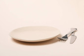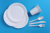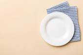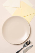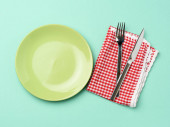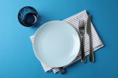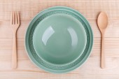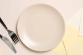 Minimalne ustawienie stołu z pustym naczyniem, widok z góry