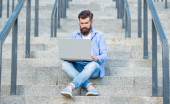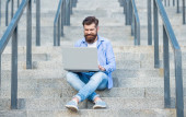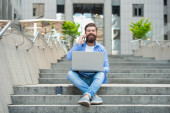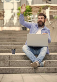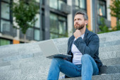 Zdjęcie "Wolny strzelec ma komunikację na laptopie, reklamę. Wolny strzelec ma komunikację na komputerze. komunikacja z wolnym strzelcem na zewnątrz. wolny strzelec ma komunikację na przerwie kawowej." może być wykorzystywane do celów osobistych i komercyjnych zgodnie z warunkami zakupionej licencji Royalty-free. Obraz jest dostępny do pobrania w jakości wysokiej rozdzielczości do 5760x3840.