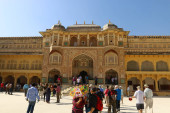 AMER RAJASTHAN INDIA - 02 17 2023: Fort Amer lub Fort Amber jest fort położony w Amer, Rajasthan, Indie. zostały założone przez władcę Alan Singh Chanda z dynastii Chanda Meenas.