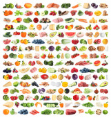 Wiele świeżych owoców i warzyw na białym tle, projekt collage