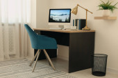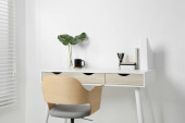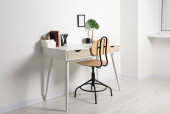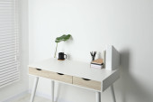 Zdjęcie "Wygodne miejsce pracy z białym biurkiem w pobliżu ściany w pomieszczeniach" może być wykorzystywane do celów osobistych i komercyjnych zgodnie z warunkami zakupionej licencji Royalty-free. Obraz jest dostępny do pobrania w jakości wysokiej rozdzielczości do 5760x3840.