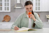 Zdjęcie "Beautiful young woman with delicious smoothie in kitchen" może być wykorzystywane do celów osobistych i komercyjnych zgodnie z warunkami zakupionej licencji Royalty-free. Obraz jest dostępny do pobrania w jakości wysokiej rozdzielczości do 5760x3840.