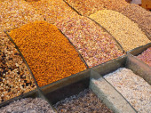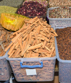 gałka muszkatołowa, cynamon, goździk i mieszana papryka w plastikowych pudełkach