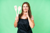 Zdjęcie "Biała kobieta w średnim wieku trzyma wałek nad odizolowanym tłem wskazując przód szczęśliwym wyrazem twarzy" może być wykorzystywane do celów osobistych i komercyjnych zgodnie z warunkami zakupionej licencji Royalty-free. Obraz jest dostępny do pobrania w jakości wysokiej rozdzielczości do 5760x3840.