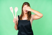 Biała kobieta w średnim wieku trzymająca wałek nad odizolowanym tłem, krzycząca z szeroko otwartymi ustami z boku