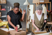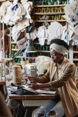 Zdjęcie "Młody poważny Afroamerykanka krawiec robi wzór tekstylny dla nowych ubrań podczas rysowania linii z kredą blisko drewnianej linijki" może być wykorzystywane do celów osobistych i komercyjnych zgodnie z warunkami zakupionej licencji Royalty-free. Obraz jest dostępny do pobrania w jakości wysokiej rozdzielczości do 5760x3840.