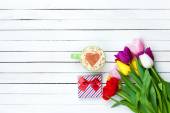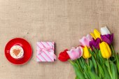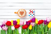 Cappuccino i Dar pole w pobliżu kwiaty