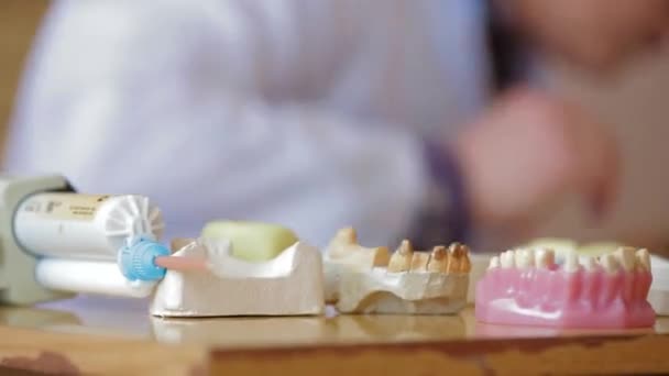 Zdjęcie "Widok boczny protezy stomatologicznej przygotowanej dla pacjenta. W tle pacjent czeka na operację protezy stomatologicznej.." może być wykorzystywane do celów osobistych i komercyjnych zgodnie z warunkami zakupionej licencji Royalty-free. Obraz jest dostępny do pobrania w jakości wysokiej rozdzielczości do 5760x3840.