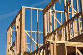 Konstrukcja drewnianej belki dachowej z ramy kratownicy dla nowo wybudowanego domu kija