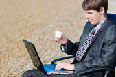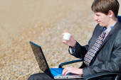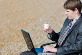 Zdjęcie "Man with laptop, sitting outdoors" może być wykorzystywane do celów osobistych i komercyjnych zgodnie z warunkami zakupionej licencji Royalty-free. Obraz jest dostępny do pobrania w jakości wysokiej rozdzielczości do 5760x3840.
