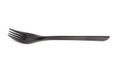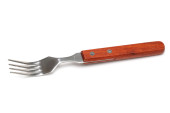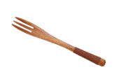Widelec z drewnianą rączką na białym, izolowanym tle