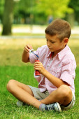 portret małego chłopca w parku