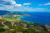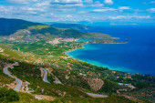 Panorama Palaia Epidavros i okolicznych wybrzeży w Grecji.