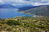 Widok panoramiczny na wioskę Poulithra na wyspie Peloponez w Grecji.