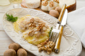 Zdjęcie "ravioli z orzechami i sosem śmietanowym" może być wykorzystywane do celów osobistych i komercyjnych zgodnie z warunkami zakupionej licencji Royalty-free. Obraz jest dostępny do pobrania w jakości wysokiej rozdzielczości do 5760x3840.