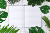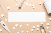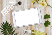 Deska z emty puste i organiczne kapsułki i tabletki, liście