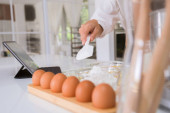Zdjęcie "Kobieta wlewa płynny mus do miski." może być wykorzystywane do celów osobistych i komercyjnych zgodnie z warunkami zakupionej licencji Royalty-free. Obraz jest dostępny do pobrania w jakości wysokiej rozdzielczości do 5760x3840.