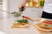 Zdjęcie "Średni wybór człowieka krojone bagietki na drewnianym stole w kuchni. Wysokiej jakości zdjęcie" może być wykorzystywane do celów osobistych i komercyjnych zgodnie z warunkami zakupionej licencji Royalty-free. Obraz jest dostępny do pobrania w jakości wysokiej rozdzielczości do 5760x3840.