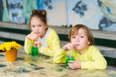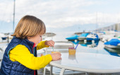 Zdjęcie "Urocze dzieci picie gorącej czekolady na zewnątrz, wydatków dobry czas na wakacje w góry alpejskie" może być wykorzystywane do celów osobistych i komercyjnych zgodnie z warunkami zakupionej licencji Royalty-free. Obraz jest dostępny do pobrania w jakości wysokiej rozdzielczości do 5760x3840.