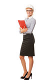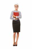 Uśmiechnięta kobieta biznesu Wyświetlono lato na białym tle