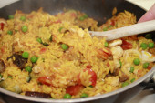 ryż, marchew mięso i przyprawy, gotowanie pilaw Uzbekistanu.