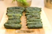 gotowanie jedzenie tureckie winogron nadziewane liście z ryżem i przyprawami