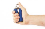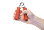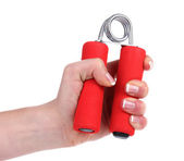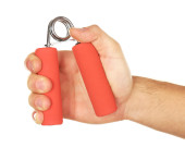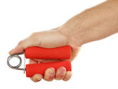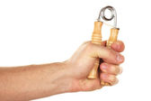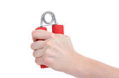 Trener dłoni ze stali sprężynowej w ręce mężczyzna na białym tle
