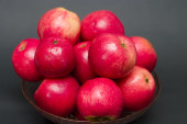 świeżych owoców, jabłka, winogron i brzoskwinie na stole