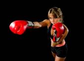 dziewczynka młody szczęśliwy piękny bokser z Rękawice bokserskie ramionami na znak zwycięstwa z dopasowanie i zdrowe ciało