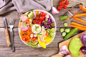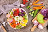 Zdjęcie "mieszana sałatka warzywna i miska sosu" może być wykorzystywane do celów osobistych i komercyjnych zgodnie z warunkami zakupionej licencji Royalty-free. Obraz jest dostępny do pobrania w jakości wysokiej rozdzielczości do 5760x3840.
