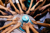 Zdjęcie "Urodzinowe ciasto z białym lukrem i świece na niebieskim tle." może być wykorzystywane do celów osobistych i komercyjnych zgodnie z warunkami zakupionej licencji Royalty-free. Obraz jest dostępny do pobrania w jakości wysokiej rozdzielczości do 5760x3840.