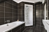 Zdjęcie "pralnia z pralką i suszarką w rogu, obok lustra na ścianie" może być wykorzystywane do celów osobistych i komercyjnych zgodnie z warunkami zakupionej licencji Royalty-free. Obraz jest dostępny do pobrania w jakości wysokiej rozdzielczości do 5760x3840.