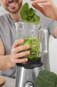 Zdjęcie "Piękna młoda kobieta przygotowuje smaczny koktajl przy białym stole w kuchni, skupić się na blenderze" może być wykorzystywane do celów osobistych i komercyjnych zgodnie z warunkami zakupionej licencji Royalty-free. Obraz jest dostępny do pobrania w jakości wysokiej rozdzielczości do 5760x3840.