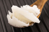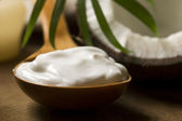Mleko kokosowe w szklance na ciemnym tle drewniane
