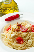 makaron oliwy z oliwek z czosnkiem i papryka chili