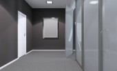 Korytarz w budynku mieszkalnym. Interesujące zakończenie korytarza. Minimalistyczny design