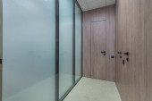 Zdjęcie "Korytarz w budynku mieszkalnym. Interesujące zakończenie korytarza. Minimalistyczny design" może być wykorzystywane do celów osobistych i komercyjnych zgodnie z warunkami zakupionej licencji Royalty-free. Obraz jest dostępny do pobrania w jakości wysokiej rozdzielczości do 5760x3840.
