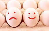 Jaja w bambusowym koszyku z uśmiech twarze