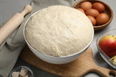 Zdjęcie "Gotowanie bułeczek z wodą sodową. Ciasto i składniki na białym drewnianym stole" może być wykorzystywane do celów osobistych i komercyjnych zgodnie z warunkami zakupionej licencji Royalty-free. Obraz jest dostępny do pobrania w jakości wysokiej rozdzielczości do 5760x3840.