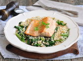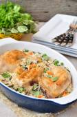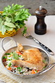 Kurczaka z grilla z dzikiego ryżu, groszek i marchewka