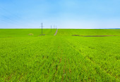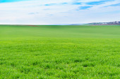 Piękne pole pszenicy jarej, krajobraz wsi, Ukraina.