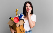 Zdjęcie "Młoda piękna kobieta czuje się zszokowana i przerażona. puste białe pudełka" może być wykorzystywane do celów osobistych i komercyjnych zgodnie z warunkami zakupionej licencji Royalty-free. Obraz jest dostępny do pobrania w jakości wysokiej rozdzielczości do 5760x3840.