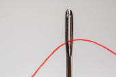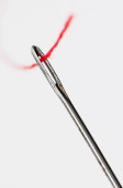 igły do szycia i czerwona nić