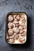Zdjęcie "Ruddy pyszne pączki berliners z nadzieniem posypane cukrem pudrem na białym talerzu na szarym tle" może być wykorzystywane do celów osobistych i komercyjnych zgodnie z warunkami zakupionej licencji Royalty-free. Obraz jest dostępny do pobrania w jakości wysokiej rozdzielczości do 5760x3840.