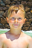 portret ładny chłopak na plaży