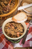 Zdjęcie "Bigos - kiszona kapusta duszona mięsem, suszonymi grzybami i kiełbasą. Tradycyjne danie kuchni polskiej." może być wykorzystywane do celów osobistych i komercyjnych zgodnie z warunkami zakupionej licencji Royalty-free. Obraz jest dostępny do pobrania w jakości wysokiej rozdzielczości do 5760x3840.
