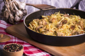 Zdjęcie "Bigos - kiszona kapusta duszona mięsem, suszonymi grzybami i kiełbasą. Tradycyjne danie kuchni polskiej." może być wykorzystywane do celów osobistych i komercyjnych zgodnie z warunkami zakupionej licencji Royalty-free. Obraz jest dostępny do pobrania w jakości wysokiej rozdzielczości do 5760x3840.
